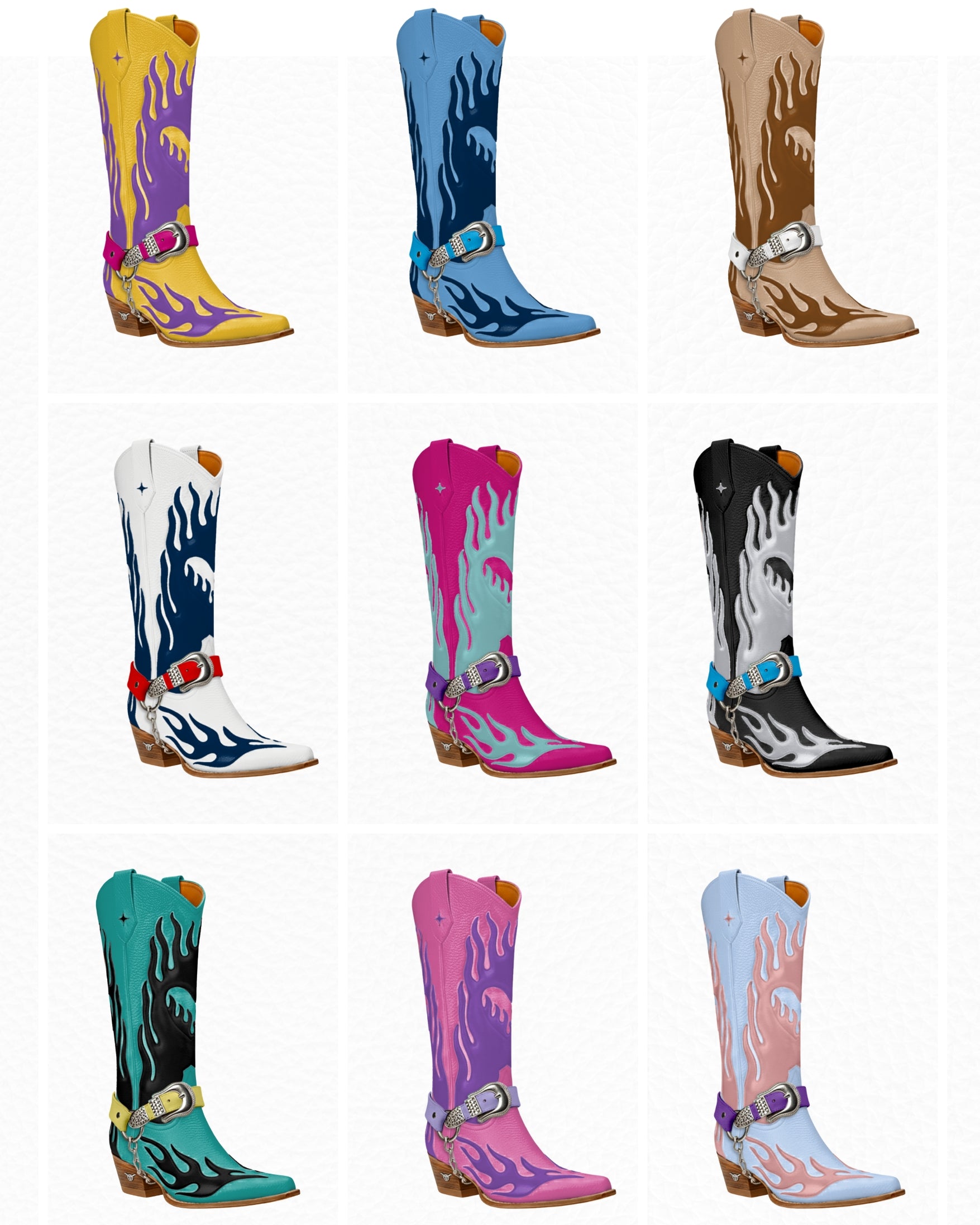 Fully customized. From heel height to toe shape, leather colors and finishes. Embroidery, inlay, tooling, hand painting and custom metalwork available.